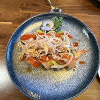 “ First time. Friendly atmosphere and personel. Clean. Modern interior design. Adult beverages offered. A large selection of Sushi plates and more. I enjoyed the Maui Roll, which was delicious! Diner was 50 bucks for 2, no alcohol , and included tip. ”